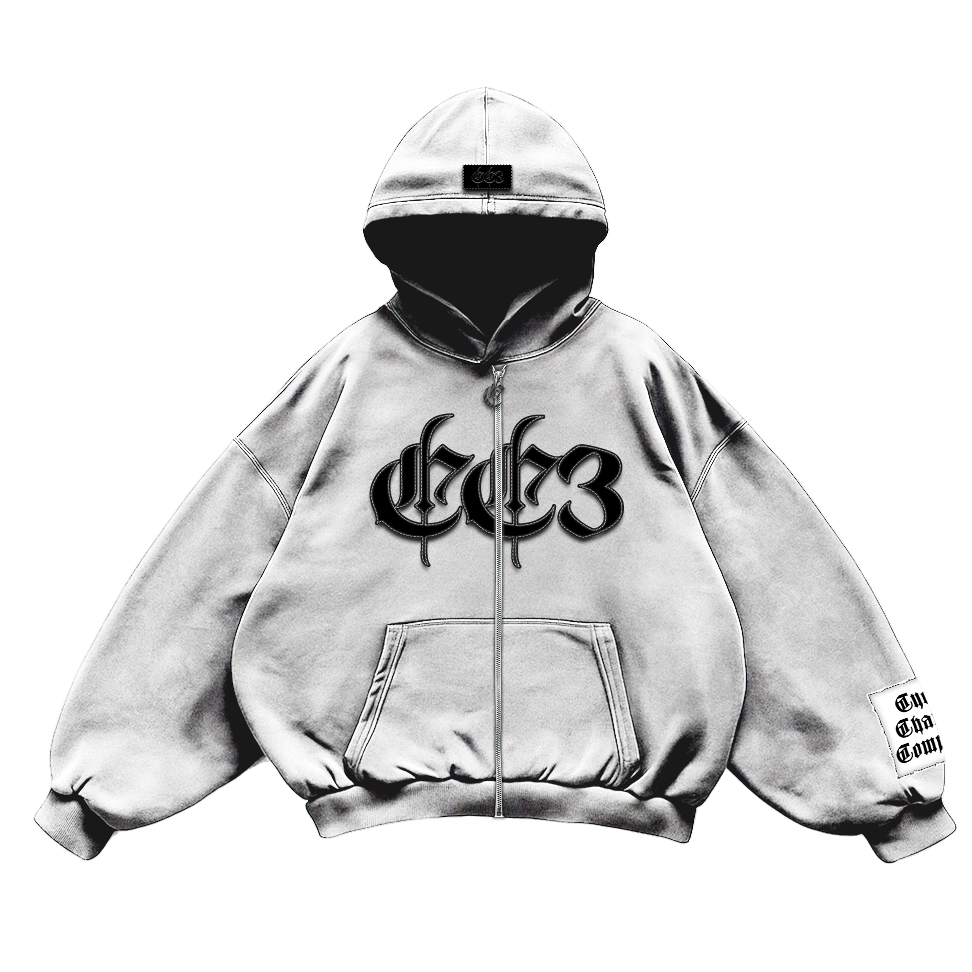Crafted from premium cotton fabric, the CC3 Hoodie combines comfort, durability, and elevated streetwear design. It features a YKK high-quality zipper for smooth functionality and a front kangaroo pocket for everyday convenience. The distressed embroidery logos on the front, back, and sleeve add character and authenticity to the piece, while the printed hand graphic on the back symbolizes creativity and craftsmanship. Topped off with a rubber CC3 logo on the hood, this hoodie captures the essence of Cycle Change Complete — bold, resilient, and ever-evolving.